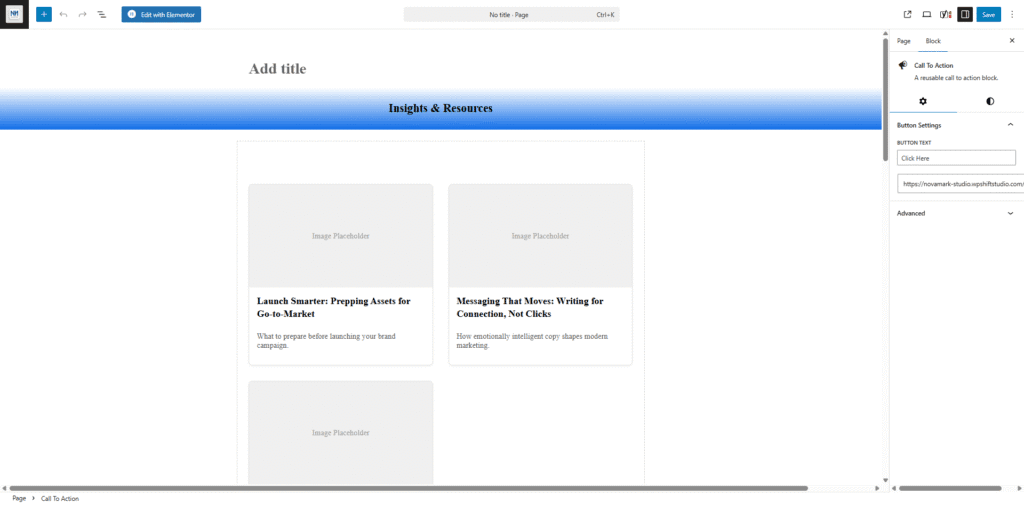 Gutenberg block admin screen.