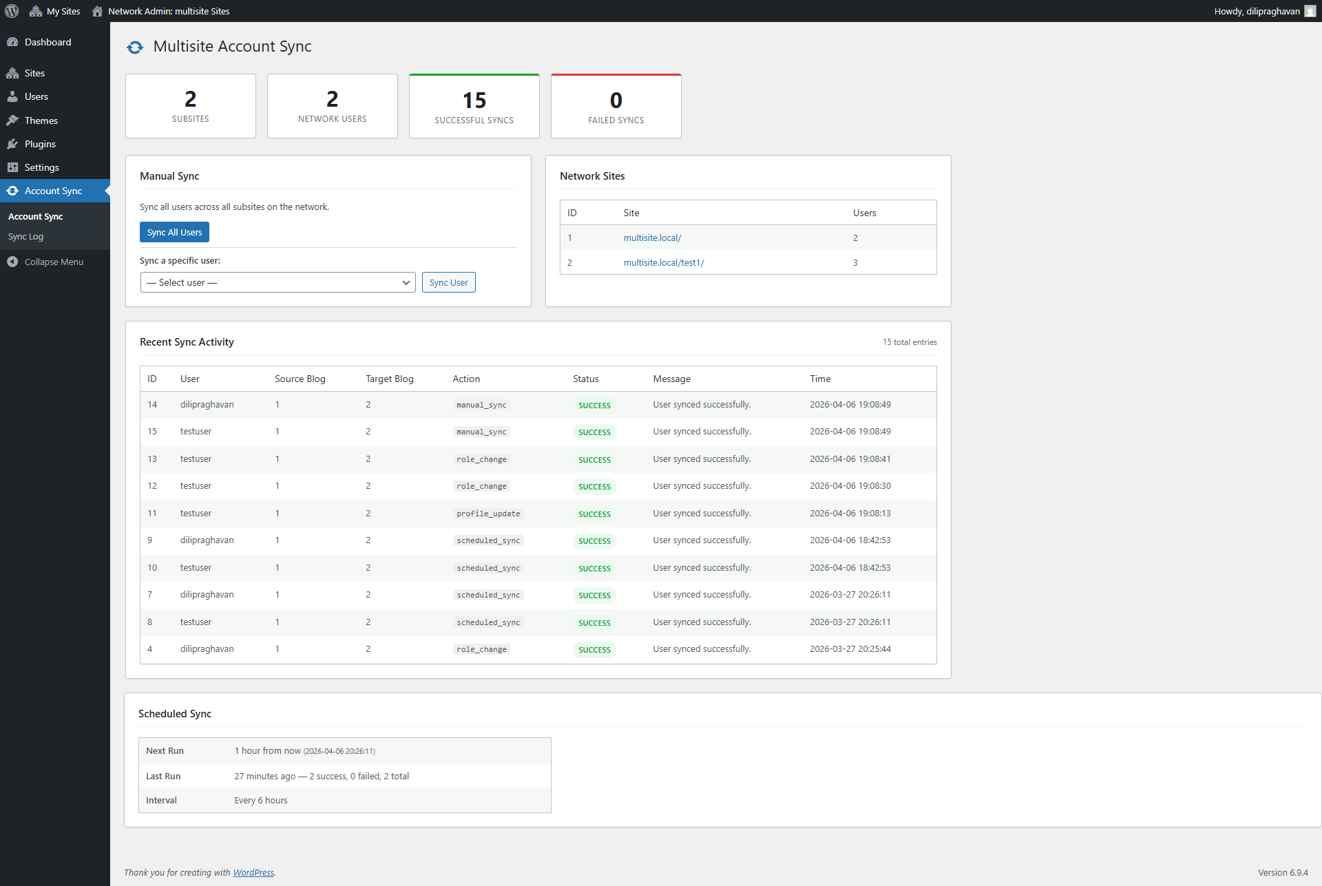 Enterprise WordPress deployments increasingly rely on multisite networks where users need consistent access across all subsites. Managing this manually — adding users, syncing roles, keeping profile data consistent — becomes unmanageable at scale. There was no lightweight, developer-friendly solution that handled automatic propagation, provided a full audit trail, and gave network admins visibility into sync status without bloated third-party dependencies.